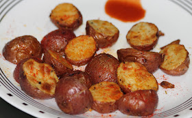 - Drizzle some olive oil, a few dashes of hot sauce (go by your tolerance for heat), sprinkle some paprika and salt for seasoning. Toss it well and transfer to a baking sheet/pan.