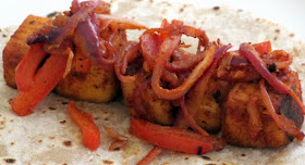 Well, how do I get to have Paneer Kati Roll without flying all the way across the country? I make it in my own kitchen. I have come up with my own version of this spicy-savory dish. I don't know what all goes in the original kati roll, but my creation keeps me satisfied between my visits to NY :D.