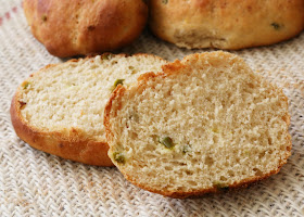 I had bought a copy of Homemade Bread - Popular Kitchen Series a few months back. It's a great little magazine that explains bread making techniques in detail and has some great recipes anyone can try at home. I've tried a few now, some with my variations, and they worked out great. A few days back, I took a recipe for a basic loaf and made smaller sandwich rolls with some oomph. Jalapeno-parmesan rolls were great to make quick sandwiches - especially for lunchbox. Husband likes them because sandwiches are are easy to eat at work. With a fried egg in between, they make for a great brunch. There's lots of flavor in the bread itself, so anything you stuff in between will taste great. The recipe is very adaptable - you can add a myriad of things to the dough, like olives, onions, sun-dried or regular tomatoes, zucchini, garlic, herbs, any other cheeses you like. Let your creativity go wild.