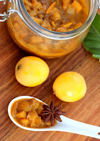 Loquat, unlike most other fruit trees, starts flowering in late winter and bears fully ripe fruits around late spring. So around this time, we have more fruits than we can manage to eat. I looked up if I could use the excess fruits in cooking. Turns out loquat is great for tarts, chutneys, jellies and jams. Makes total sense given the fleshy, juicy texture. I made a simple chutney with it, similar to the mango chutney made with ripe yet firm mangoes available in India around this time. It would be the perfect accompaniment to any light meal. You can make it with peaches, apricots, or firm ripe mangoes too.