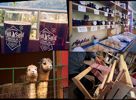 We had planned to drive on the Columbia river highway one day and loop around Mt. Hood the next. My hopes of seeing Mt. Hood were washed away by torrential downpour. As they say, 'There's no bad weather, just inappropriate clothing'. We made the best of our time by visiting various fruit farms on the Fruit Loop. Yes, it was colorful and very delicious :). The Fruit Loop is the road that connects Columbia river highway and the highway around Mt. Hood. It was a fun break journey visiting various fruit orchards, lavender farm and an Alpaca farm. Most of the orchards were just blooming, but we sampled lots of berry jams, sauces, ice-creams and other preserved fruit goodies at each of the locations. I will open the two jams and huckleberry scone mix I bought soon.