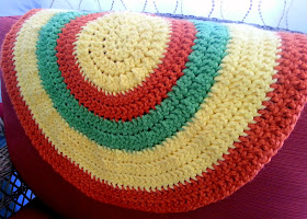 Yet another bright-colored pattern for our patio. I intended it to be a rug, but we've been using it as a patio chair throw and it looks pretty.