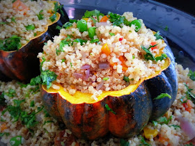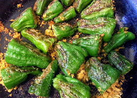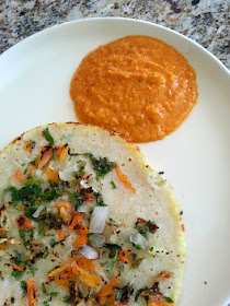 I was on the important task of eating down our overstocked fridge before mom and dad left. Monday night I took all the veggies - Brussels sprouts, cauliflower, carrots, turnip, and a leftover poblano pepper - and decided to use them up. I had originally planned to roast Brussels sprouts on Thanksgiving; it was time to do so finally. Rest of the vegetables, also roasted, went into a velvety smooth soup. The soup was made at mom's request - she kept on talking about this wonderful roasted cauliflower soup she had tried somewhere, and had been asking me to make it. The other vegetables happened to go well with it, so I tossed them in. What started as an exercise to just finish up the produce turned into a wonderful meal, perfect for the cold night we had.